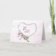 Rosa blommor med grönt ivy bouquet på vitt satingravinhjärta på rosa som har texturerat bakgrunden i 27 bröllop år för par.