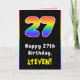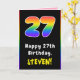 Det här feta och glatta födelsedag med hälsningskortet har nummer "27" med ett dynamiskt multifärgat regnbågsspektrum som inspirerar gradienten mönster, tillsammans med meddelandet "Lycklig 27:e födelsedagen" och en anpassningsbar som tar emot namn. Insidan har ett hälsning-meddelande från anpassadets födelsedag, eller kan kanske rensas och lämnas tomt om ett meddelande ska skrivas för hand i stället. Ett sådant här hälsningskort för personligens födelsedag kan användas för att fira någons tjugosjunde födelsedag. [~Z0000627]