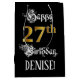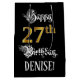 Den här opulenten och elegantens födelsedag med presentsäcksdesignen innehåller meddelandet "Lycklig 27:e födelsedagen" och en personlig mottagare namn. En del av budskapet finns i en lyxig text med skript-stil, det stora talet "27:e" har ett faux/imitation guld-inspirerat utseende mönster, och bakgrunden är färgadens svarta. En finare-presentsäck av det här slaget kan användas när man slår in presenter som ges till någon i firande på deras 27-årsdag. [~Z0000560]