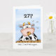 Det här kortet är underbart att skicka Grattis på födelsedagen Önskemål till någon speciell. Kortet har en söt och förvånad tittar ko. Någon blir 27 och kon är chockad och förvånad och överväger att lägga ut dessa nyheter på medieplattformarna i social.