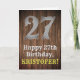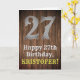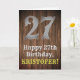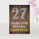 Det här amerikanska Vilda western ser ut och land ser ut som ett födelsemönster med ett stort rustiskt utseende nummer "27", meddelandet "Lycklig 27:e födelsedag", ett eget namn och ett faux-/imitationstryksäd som inspirerar till mönster. Insidan har ett anpassat hälsning-födelsedagsmeddelande, eller så kan det kanske rensas och lämnas tomt om ett meddelande ska skrivas för hand i stället. Ett sådant här hälsningskort för personligens födelsedag kan vara ett roligt sätt att leverera lite önskemål till någon som firar sin tjugosjunde födelsedag. [~Z0000469]