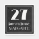 Den här vintagen ser ut och 20-årsjubileet inspirerade till den pappra napkindesignen med en stor konst deco stil-inspirerad nummer "27", meddelandet "27:e födelsedag i Lycklig", ett eget namn och ett gräns mönster som består av tunt linjer. Roligt, redigerbar födelsedag som pappra blöjor av det här slaget kan användas vid någons 27-årsfirande. [~Z0000461]