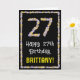På framsidan av den här roligten finns det ett kort med grönt kort för födelsedagshälsning, som inspirerats av trädgården, med texten "Lycklig 27:e födelsedag", tillsammans med en personlig som tar emot namn. Det stora talet "27" plus gräns på framsidan har båda blomsikonerna. Insidan innehåller ett hälsning-meddelande från personligens födelsedag, eller kan kanske tas bort och lämnas tomt om ett meddelande ska skrivas för hand i stället. Ett blommigt, redigerbart födelsedagskalenderkort som detta kan vara ett roligt sätt att skicka lite önskemål till någon som firar sin tjugosjunde födelsedag. [~Z0000648]