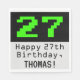 Den här pappra napkin-designen med roligt och hög födelsedagstext har ett stort klassiskt datorspel stil nummer "27" på en svart färgads bakgrund. Det innehåller också hälsning:s födelsedagsmeddelande "Lycklig 27:e födelsedag" och ett eget namn. Fånigets pappra blöjor av det här slaget kan användas i ett party som hålls för att fira den tjugosjunde årsdagen för en datorhistoriker, en ingenjör, eller någon som har vintage dataspel. [~Z0000404]