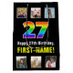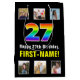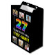 Den här fet och roligt presentsäcksdesignen har ett stort nummer "27" med ett färgstarkt regnbågsspektrum som inspirerar gradienten mönster, tillsammans med meddelandet "Lycklig 27:e födelsedagen" och en personlig mottagare namn. Ovanför och nedanför meddelandet finns några foton som kan vara personlig, kanske med foton av mottagaren, mottagarens familj och vänner och/eller presentens avsändare. En matad presentsäck som den här kan vara ett roligt för att slå en present till någon som firar sin tjugosjunde födelsedag. (Photography © Storytree Studios, Stanford, CA.) [~Z0000669]