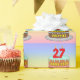 Den här roligten och det populära födelsedagskalemat som omsluter papper design har en bild av tecknad-stil av en treskiktad födelsedagskalas med numeriska stearinljus ovanpå som visar nummer "27", tillsammans med meddelandet "LYCKLIG 27 BIRTHDAY," och en mottagare av anpassningsbar namn. Bakgrunden har en flerfärgad pastellfärgad regnbågsspektrum som inspirerar till gradienten mönster. Födelsedag som är papper som detta kan användas när en gåva eller present i firande på någons tjugosjunde födelsedag är ge. [~Z0000622]