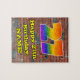 Denna spännande och roligt gatukonst och graffiti inspirerade pusselpusslet på födelsedagen har ett stort nummer "27" med en färgstark regnbågsspektrumövertoning som inspirerade mönster, tillsammans med meddelandet "Lycklig 27:e födelsedag" och ett eget namn. Bakgrunden har en tegelvägg mönster. Ett färglöst munkavle på anpassadets födelsedag som detta kan ges för att fira någons tjugosjunde födelsedag. [~Z0000545]