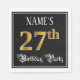 Den här pappra napkin-designen för finare och elegant har anpassadet namn och meddelandet "27:e Födelsedagsfesten". Det stora talet "27:e" har faux/imitation guld-inspirerad färgning mönster, ord "Födelsedagsfest" är i lyxig text som heter stil och bakgrunden är färgad svart som standard (även om den kan anpassas). Det kan vara nyttigt att ha en födelsedagskalender i firande på någons 27-årsdag. [~Z0000565]
