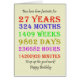 27:e födelsedagskort som räknar ned år, dagar, månader, timmar och minuter. Ett kort till tankepaus i ge! Man har tagit hänsyn till läderåren!