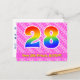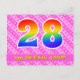 Framsidan av denna födelsedagskortdesign med tema födelsedag i kärlek, glädje och lycka har ett stort nummer "28" med ett mönster inspirerat av regnbågens färgskala, tillsammans med meddelandet "Grattis på 28-årsdagen", och ett anpassningsbart mottagarnamn. Framsidan har dessutom ett glatt mönster av mörkt rosa och ljust rosa hjärtformer och ränder. Baksidan har ett anpassningsbart födelsedagsmeddelande, eller skulle kunna rensas och lämnas tom om ett meddelande ska skrivas för hand istället. Ett anpassningsbart födelsedagskort som detta kan vara ett roligt sätt att fira någon på deras tjugoåttonde födelsedag. Postkort som detta kan också användas för att inbjuda gäster till en födelsedagsfest som hålls för