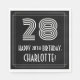 Denna 20-årsjubileum inspirerade till den pappra napkindesignen för födelsedagsdagen. Den har ett stort Art Deco-utseende inspirerat nummer "28", meddelandet "LYCKLIG 28:e BIRTHDAY", ett redigerbart namn och ett gräns mönster som består av linjer. Roligt, anpassade pappra blöjor av det här slaget kan användas vid en födelsedagskalender som hålls för att hedra någons tjugoåttonde födelsedag. [~Z0000395]