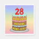 Den här roligten och den glatta födelsedagskalematoden för papper napkin har en tecknad-stil-bild av en treskiktad födelsedagskalas med numeriskt formade ljus ovanpå som visar siffran "28", tillsammans med meddelandet "LYCKLIG 28:E BIRTHDAY," och en anpassningsbar-mottagare i namn. Bakgrunden har en gradient mönster som är inspirerad av skalan för pastellregnbåge med flera färg. Skämmande pappra servetter av det här slaget kan användas när man tar emot en födelsedagsfest till någon i firande på deras tjugoåttonde födelsedag. [~Z0000623]