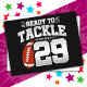 Denna fotbollsfödelsedagsdesign är perfekt för en 29-årsdag fotbollstema födelsedagsfest för att fira att man fyller 29 år! Innehåller 'Redo att tackla 29' 29-årsdag fotbollscitat med fotbollsgrafik. Perfekt för alla som älskar fotboll som fyller 29 år!