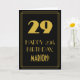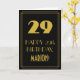Denna vintage-/retrolook och inspirerad av tjugotalets era födelsedagsgratulationskortdesign har en stor siffra "29" i art déco-stil, meddelandet "GRATTIS PÅ 29-ÅRSDAGEN", ett anpassat namn och ett kantmönster bestående av tunna linjer på framsidan. Framsidan har svart bakgrundsfärg. Insidan har ett personligt födelsedagsmeddelande, eller skulle kunna vara tom om ett meddelande ska skrivas för hand istället. Ett redigerbart födelsedagsgratulationskort som detta kan användas för att fira någons 29-årsdag. [~Z0000499]
