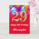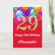 29:e födelsedag: Röda och Guld färgade ballonger Kort
