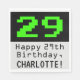 Den pappra napkin-designen för den här genterapin- och roligten-födelsedagstidningen har ett stil nummer "29" på en svart färgad med stor grönt. Det innehåller också hälsning:s födelsedagsmeddelande "Lycklig 29:e födelsedag" och ett namn som kan anpassas. Roligt och nonsens pappra blöjor som denna kan användas vid en party som hålls i firande på 29-årsdagen av en datorhistoriker, en ingenjör eller någon som gillar datorspel. [~Z0000404]