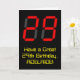 På framsidan av det här fåniget och på roligtens födelsedag finns det ett stort nummer "29" med ett rött utseende av den digitala visningen stil, tillsammans med meddelandet "Ha en Underbar 29:e födelsedag" och en personlig namn, på en svart färgad. Insidan innehåller ett hälsning-meddelande från anpassningsbarnas födelsedag, eller kan kanske tas bort och lämnas tomt om ett meddelande ska skrivas för hand i stället. Ett sådant här födelsedagskort i personligen kan vara ett roligt för att erkänna någons tjugonionde födelsedag. [~Z0000386]
