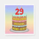 Denna glatta och färgstarka pappra napkindesign har en tecknad-stil-bild av en treskiktad födelsedagskalas med sifferformade ljus ovanpå som visar åldern "29", tillsammans med meddelandet "LYCKLIG 29TH BIRTHDAY," och en anpassningsbar-mottagare namn. Bakgrunden har en gradient mönster som är inspirerad av skalan för pastellregnbåge med flera färg. Pappra servetter som dessa kan användas vid en födelsedagsfest som hålls i firande på någons tjugonionde födelsedag. [~Z0000623]