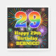 Den här pappra napkin-designen för glatt och roligt-födelsedags har ett stort nummer "29" med en färgstark regnbågsspektrumövertoning som inspirerar mönster. Det innehåller också meddelandet "Lycklig 29:e födelsedag" och ett eget namn. Bakgrunden har ett sjudande och färgstarkt mönster som inspirerats av brinnande högljudda fyrverkerier. Färgfulla pappra blöjor av det här slaget kan användas när man är värd för ett party för någon i firande på deras 29-årsdag. [~Z0000574]