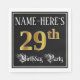 Den här pappra napkin-designen med ornitalt och elegant-format har anpassadet namn och meddelandet "29:e Födelsedagsfesten". Det stora antalet "29:e" har en imitation/faux guld-inspirerad färgning av mönster, och ord "Födelsedagsfest" finns i texten finare-manuset-stil. Bakgrunden är färgadens svarta som standard (även om den kan anpassas). Finare, sådana här opulenta pappra blöjor kan vara användbara vid en födelsedagskalender som hålls för att hedra någons tjugonionde födelsedag. [~Z0000565]