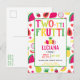 2:a födelsedag Bort med två-ti Frutti Födelsedagsfest-vykort De berömvärda leveranserna från party togs upp av Tutti Frutti eller TWO- tti frutti. Ananas, mango, passionsfrukt, banan, päron, vattenmelon och andra tropiska roligtar mönster. www.SamAnnDesigns.com