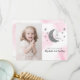 Två måne! Andra födelsedag med silver måne och stjärnor med rosa vattenfärgbakgrund. Fotomall via Pixabay med licens enligt CC0 och måste ersättas med ditt eget foto