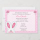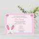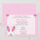 Cute Bunny Rabbit Birthday Bjud för flickor. Det är perfekt för alla åldrar att söka vit boskap med rosa öron och kan ändras till lämplig ålder. Rosa prickad bakgrund och rosa hjärtballonger gör extra sött.
