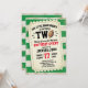 Inbjudan era gäster i stil med den här toppen sportfotbollen biljett 2:a födelsedagsinbjudan. Den här designen har en gedigen bakgrund av grönt och vitt viltlevande trä. I mitten är en fotboll med all information om party på en biljett. Det står: "Vår lilla kvarterback vänder två, Gå med oss för denna Epic Birthday-händelse, till heder för ditt barns namn"-datum i party och adress med OSA nedan. Kortets baksida har grönt och vit rand i ett matchande barrträ. Det här är en speciellare personlig som din familj och dina vänner kommer att ta efter och behålla som ett memorandum. Designad av konstnärer ©Susan Coffey och Tim Coffey.