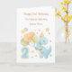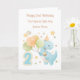 Det här 2-års födelsedagskortet är lämpligt för en sonson eller son. Designen inkluderar en akvarell ballongdinosaurie med festhatt och cupcakes.