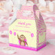 En leende apa och rosa party-ballonger dekorerar framsidan och baksidan av den här lådan i firande på en pojkes eller flickas andra födelsedag. Texten längst upp och längst fram i rutan är fullt redigerbar och lyder för närvarande "Tack" "FÖR HJÄLPEN US CELEBRATE" "Rowans andra födelsedag". På sidan om rutan finns det ytterligare redigerbar text, med ett förslag om att namn på mottagaren skall notera "Denna party-ruta tillhör till". Färg är krämbakgrunden och mönster av rosan är klar.
