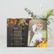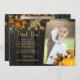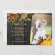 Elegant chic höstbröllop stilfull tack-kort mall på mörkbrun lada trä med vackra brända orange botaniska buketter med akvarellpumpa, torkade blad och löv, strängar eller glittrande ljus och ett chic falskt guld kalligrafiskrift. ++++++++++++++ Lätt att anpassa med dina detaljer och två foton på fram- och baksidan! +++++++++++ Lämplig för eleganta sommar- eller hösthöst lantliga landsbygdens utomhus bakgård eller lada bröllop.