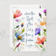 Med vykort med kristen inspirationsteckenskript visas en enkel vattenfärgskonstruktion för blommigt med en mängd olika rosa, blå och lavender-blommor och grönska. Den har en uppmuntrande bibelverse från 2 korintianer 3:17: "Där Herren har sin själ finns frihet." Hälsning, bön kan vara personlig eller raderas för ett handskrivet meddelande.