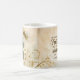 Kaffet med inspirationcitattecken mugg skildrar en naturlig vattenfärgsdesign i löv med neutralt grönt och guld färg. Den har Christian Bible Verse 2 Corinthians 5:7, "Vi går i tro inte vid synen."