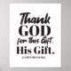 Tack gode Gud för denna gåva, hans gåva. 2 Corinthians 9:15 bibelverse. Cute Kristian-gåva och julklapp. Annan färg.