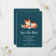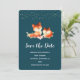 Spara datumkortet med två röda rävar teckning. Den ena står upp för den andra. Ritad med vattenfärg.