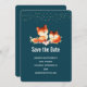 Spara datumkortet med två röda rävar teckning. Den ena står upp för den andra. Ritad med vattenfärg.