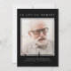 Klassiskt svart i att älska minneskort med foto är ett tidlöst och elegant sätt att hedra och minnas en älskad person och samtidigt uttrycka tacksamhet. Framsidan av det här minneskortet på anpassningsbarna innehåller ett stort foto med en dubbla-line gräns, som ställs in mot en solid svart bakgrund för ett förfinat och värdigt utseende. Ovanför bilden visas frasen "In Loving Memory" i ren typografi, med utrymme nedan för anpassade, inklusive namn och data. På motsatt sida finns ett andra fotoområde vid sidan av ett tack till personligen som gör det möjligt för familjen att erkänna vänligheten, stödet och de kondoleanser som har mottagits under en svår tid. Denna dubbla utformning gör kortet både till en vacker hyllning och till ett hjärtligt uttryck för uppskattning, och ser till att det fungerar som både en keepy och en gest av tacksamhet. Detta kort är lämpligt för begravningar, firande av liv eller minnessammankomster och balanserar enkelhet med känslomässig betydelse. Dess klassiska svarta och vita stil garanterar att det förblir mångsidigt och respektfullt, medan infogandet av två foton ger en varm och personlig beröring. Oavsett om det delas ut på personligen, skickas till familj och vänner, eller om det hålls som en minnesstund, är det här minneskortet en varaktig påminnelse om kärlek, tacksamhet och omhuldade minnen.