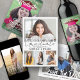 Meddela den glada nyheten om en kommande studentfest med snygga moderna 2-foto "save the date" postkortinbjudningar. Texten på denna mall är enkel att anpassa med examenens namn, examensår och andra meddelandedetaljer. Färgerna, typsnittsstilarna och överlagringsopaciteten kan enkelt anpassas med Zazzle Design Editor-verktyget. Den svart-vita designen har en studentmössa, elegant minimalistisk klassisk typografi och två bilder som du väljer, till exempel studentbilder eller bilder från examensceremonin. Dessa examens-"save the date"-kort är ett stilrent sätt att dela en speciell dagsfirande med familj och vänner. Grattis till examen! Exempelbilden på baksidan är av Averie Woodard (källa: @averieclaire på Unsplash).