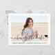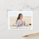 Om oväntade omständigheter har orsakat en försening eller inställning av din examensfest, informera familj och vänner om ändringen i planerna med dessa enkla moderna minimalistiska "spara det nya datumet" postkorts-inbjudningar. Alla foton och texter är enkla att anpassa för att inkludera examenens namn, årskurs, skola och andra evenemangsuppgifter. (TIP FÖR BILDPLACERING: Ett enkelt sätt att centrera ett foto exakt som du vill är att beskära det innan du laddar upp det till Zazzle-webbplatsen.) Designen har handskriven stilspråkskalligrafi, stilren vintage Art Deco-inspirerad typografi och 2 foton som du väljer, till exempel seniorbilder eller bilder från examensceremonin. Detta eleganta examensanmälningskort är ett trendigt och chic sätt att börja din speciella dagsfirande och inbjuda gäster att spara ditt nya datum. Grattis