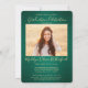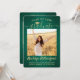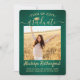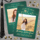 Dela glädjen av en gymnasie- eller högskoleexamen och bjud in familj och vänner att fira med dessa anpassade gröna och guldfärgade födelsedagsinbjudningar med 2 foton. Alla bilder och texter är enkla att anpassa. (TIP: Ett enkelt sätt att centrera en bild exakt som du vill är att beskära den innan du laddar upp den till Zazzle-webbplatsen.) Denna mall är formaterad för en examensfest, men kan enkelt anpassas som en inbjudan till öppen hus eller ett meddelandekort. Ändra bara texten för att inkludera alla detaljer du vill ha, till exempel föräldrar namn, speciella utmärkelser, examens titel, favoritcitat, examenens framtida planer eller ny adress. Om det finns någon text som inte önskas kan den helt enkelt raderas. Designen har en grön borstad bakgrund, falsk folie mortarboard mössa, handskriven stils calligrafi, modern minimalistisk typografi och två foton som du väljer, till exempel seniorbilder eller bilder från examensceremonin. Observera att guld är tryckt färg, inte metallfolie. Dessa eleganta examensannonseringskort