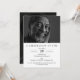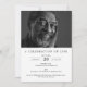 Denna eleganta firande av liv-inbjudan har en tidlös svart-vit design som vackert hedrar minnet av en nära och kära. Framsidan visar en gripande porträtt, i kombination med klassisk typografi som framhäver evenemangets detaljer och skapar en inbjudande och respektfull ton. Baksidan av inbjudan visar en annan hjärtlig bild, tillsammans med den avlidnes namn och levnadsdatum, som en rörande hyllning. Helt anpassningsbar, denna inbjudan ger ett meningsfullt sätt att samla vänner och familj till minne, så att du kan anpassa varje detalj för att återspegla den unika anden och arvet efter din nära och kära. Tillgänglig som tryckta kort eller en direkt digital nedladdning.