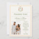kärlek och tacksamhet med detta 2-foto av handflatan träd bröllop-kortet, med ett anpassningsbar-monogram, en tropisk grön elegant och plats för två personliga foton. Perfekt för destination, strand eller sommar-bröllop blandas det moderna stil med avslappnade öviber. Ett vackert sätt att tacka gästerna medan du visar dina favoritstunder i bröllop.