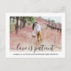 Om oväntade omständigheter har orsakat en försening eller inställning av din speciella dag, informera familj och vänner om ändringen i planerna med dessa eleganta "kärlek är tålamod" bröllop - spara det nya datumet postkortsinbjudningar. Bilder och all text är enkla att anpassa. (TIP FÖR BILDPLACERING: Ett enkelt sätt att centrera ett foto exakt som du vill är att beskära det innan du laddar upp det till Zazzle-webbplatsen.) Designen har en vit kant, handskriven stilsv kalligrafi, modern minimalistisk typografi och 2 bilder som du väljer, en vardera på fram- och baksidan. Detta förlovningskort är ett chic och stilrent sätt att informera bröllopsgästerna om din kommande speciella dagsfirande och inbj