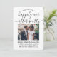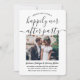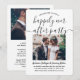 Bjud in familj och vänner till en elegant bröllopsfest med denna stilrena moderna 2-foto-inbjudan. All text är lätt att anpassa för en 1-årsdag, förnyelse av löften, ett andra bröllop, efter bröllop eller middag. Anpassa den för att inkludera alla detaljer du önskar, såsom datum för vigseln, klädkod, rsvp, webbplats, etc. (TIPS FÖR BILDPLACERING: Ett enkelt sätt att centrera ett foto exakt som du vill är att beskära det innan du laddar upp det till Zazzle-webbplatsen.) Den moderna minimalistiska svart-vita designen har två bilder av det nygifta paret, trendig handskriven kalligrafi och chic skrivmaskinstypografi.Oavsett om ni rymde, hade ett mindre bröllop eller om er speciella dags firande fick skjutas upp på grund av en Covid-19-pandemirelaterad för