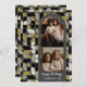 Ett modernt God jul-fotokort i neutralter - guld, grått och svart. Bilden är en mod med färgad gräns. Den moderna designen innehåller en mönster mcm och skripttyp för huvuddelen av texten. Hälsning befinner sig i ett historiskt modernt manus.