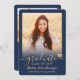 glädjen i en högskoleexamen eller högskoleexamen med anpassningsbar 2-fotomarktyrblått och guld-meddelanden. Alla bilder och formuleringar är enkla att anpassa. (IMAGE PLACEMENT TIP: Ett enkelt sätt att centrera ett foto exakt som du vill är att flytta det till skörd innan du laddar upp det till Zazzle-webbplatsen.) Den här mallen är enkel att anpassa med valfri information, t.ex. information om inbjudningar till föräldrar, föräldrars namn, speciella arvoden, graderingstitel, favoritcitat, kontaktinformation för student, framtida utbildningsplaner eller ny befattning. Om det finns text som inte är önskad raderar du den. Utformningen har ett faux-guld-folie-pantarkort, handskrivet stil-manusgrafi, modern minimalistisk typografi och två foton som du själv väljer, t.ex. äldre bilder eller bilder från startceremonin. De här studenten-annonskorten i elegant är ett trendig och en chic för att din speciella firande med familj och vänner. Grattisar till student!