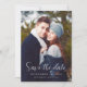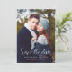 Det här enkla, elegant fotot Spara datumkortet innehåller orden "Spara datumet" i det moderna handskriftsskriptet över ditt favoritfoto på lodrät, tillsammans med ditt bröllop-datum och din plats i serietypsnittet. Med en övertoning för mörk skärm kan du få vit text att hoppa. På baksidan lägger du till ett andra foto, tillsammans med ytterligare information och en QR-kod som vägleder gästerna till webbplatsen för bröllop.