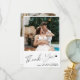 Elegant minimalistiskt trendig med modern handskriftsskript med vismisk kalligrafi-skript bröllop tack för att du har kort med två foton, namn och textmeddelandemall. Enkel att anpassa på båda sidor med text och bilder. (+++++++++) Lämpligt för avslappnad, kustnära chic eller sommarstranddestination.