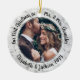 Fira en glatt första helgdag som gift par med ett foto av anpassningsbar 2: "Vår första jul som Mr. Och Mrs." runda keramiska prydnadsföremål. All text och bilder på den här mallen är enkla att anpassa och kan vara olika eller likadana framifrån och bakåt. (IMAGE & TEXT DESIGN TIPS: 1) Lägg till blanksteg i början eller slutet om du vill justera skrivläget. 2) Om du vill centrera fotot exakt så som du vill kan du placera det i kvadratisk form innan du laddar upp det till Zazzles webbplats.) Utformningen har en snyggt med modern svart och vit faux marble gräns, handskrivet stil-skript calligraphy namn & year och två bilder efter eget val. Denna unika bröllop-keepsaké tillför en elegant till de nya Julafton-dekorationerna. Exempelbilden är av Tim Stagge (Källa: @tim_stagge on Unsplash).
