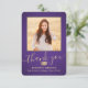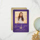 Skicka ett tacksamhetsmeddelande med anpassningsbar 2-fotot lila och guld studenten-tackkort. Alla bilder och formuleringar är enkla att anpassa. (IMAGE PLACEMENT TIP: Ett enkelt sätt att centrera ett foto exakt som du vill är att flytta det till skörd innan du laddar upp det till Zazzle-webbplatsen.) Den här mallen kan anpassas med valfri ordalydelse, t.ex. framtida utbildningsplaner, nya befattningar eller favoritinspirationstecken. Om du föredrar att lämna skriva till ditt meddelande tar du bara bort exempeltexten eller användan över utrymmet ovanför ny adress- och kontaktinformationen. Utformningen har en lila ombre-bakgrund, en faux foil-pantarmatur, handskriven stil-manusgrafi, modern minimalistisk typografi och två foton som du själv väljer, t.ex. äldre bilder eller bilder från startceremonin. Observera att guld är tryckt på färg, inte metallfolie. Dessa kort för personlig i elegant är ett trendig- och chic sätt att tacka familj och vänner för att de har delat med sig av studenten firande. Grattisar till student!